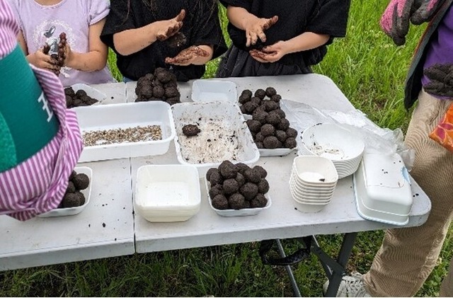 イベントでは、たねダンゴ作りやポットへのたね植え、絵本の読み聞かせなどを行います。