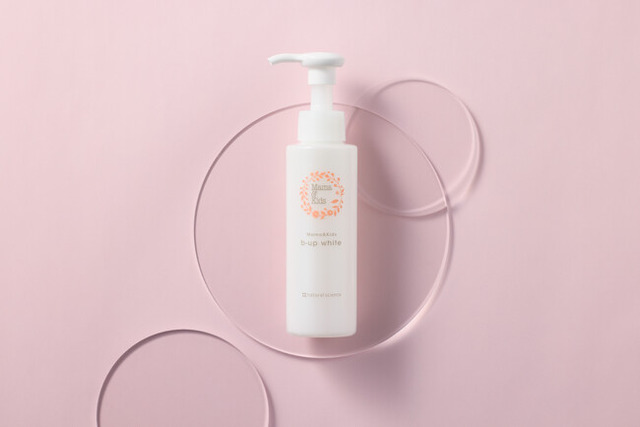 「ママ&キッズ ビーアップホワイト」は、バストのたるみや乾燥から乳頭の黒ずみまで1本でケアするバスト・デコルテ用トリートメント乳液です。このたびのリニューアルでは、産後の忙しいママのため使いやすくなった新容器にパワーアップした成分を詰め込みました。