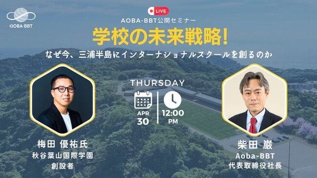 株式会社Aoba-BBT(所在地:東京都千代田区、代表取締役:柴田巌、以下「Aoba-BBT」)は、教育を通じた社会的価値の発信を目的とした「教育の未来戦略」セミナーシリーズの一環として、2026年4月30日(木)に無料オンラインセミナーを開催いたします。