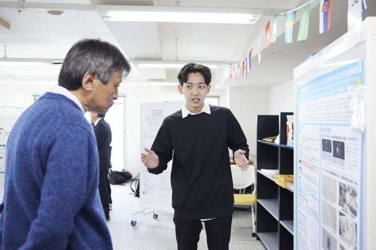 履修者83名がポスター発表をし、また、6名の学生が口頭プレゼンテーションを行いました。