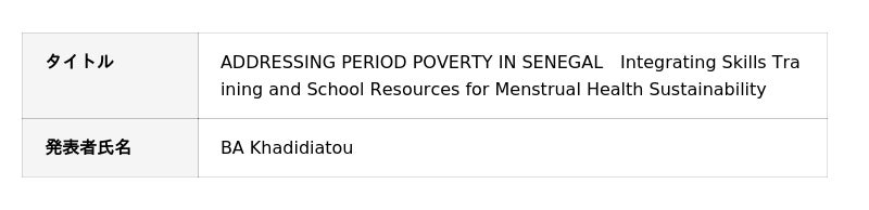 故郷セネガルでの深刻な生理の貧困問題に向き合ったBAさん。輸入品である生理用品は高価で、現地の女子学生にとっては簡単に手に入るものではありません。生理のたびに学校を休まざるを得ない生徒も多く、BAさん自身は高校時代から強い課題意識を抱いてきました。