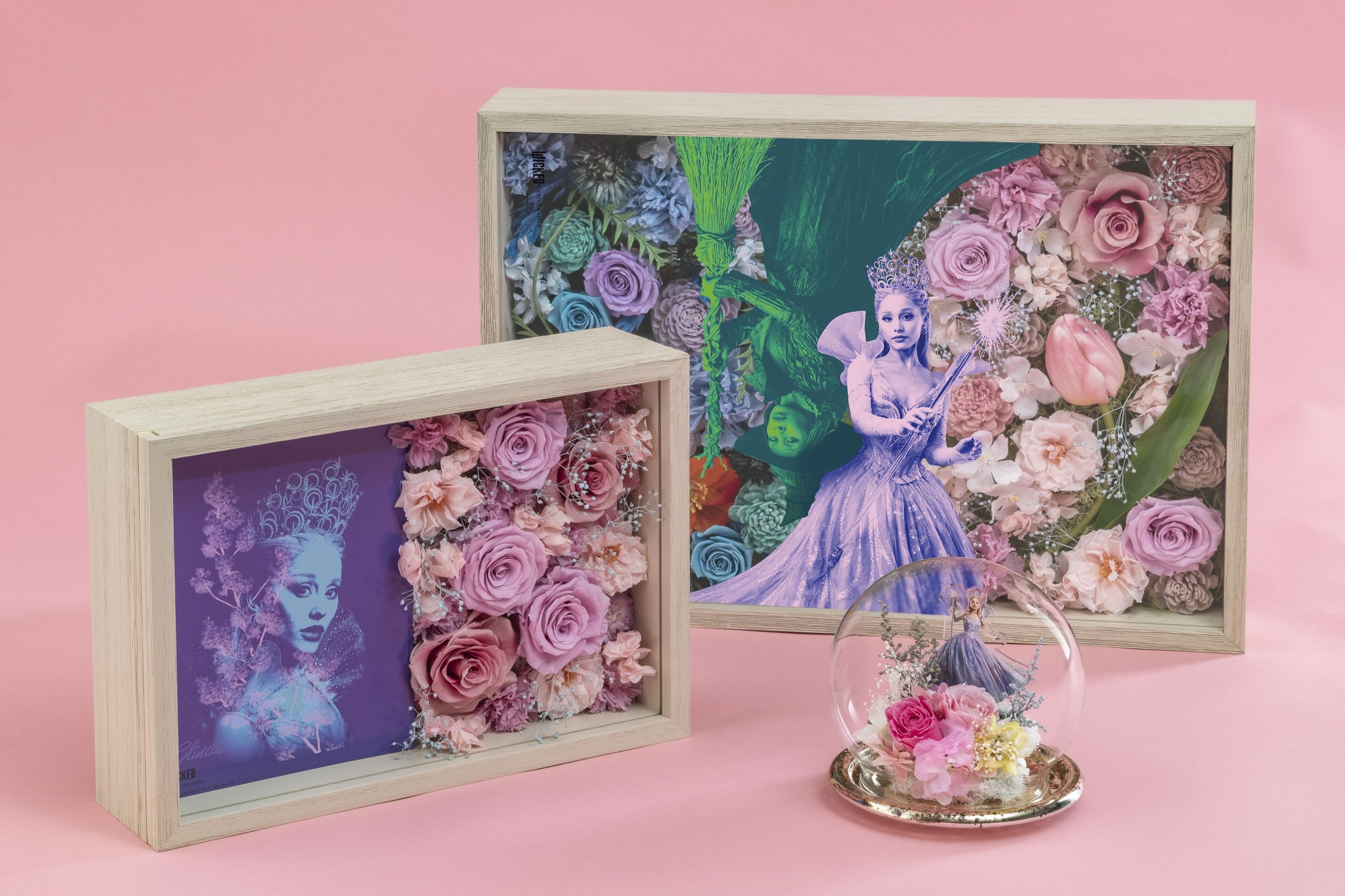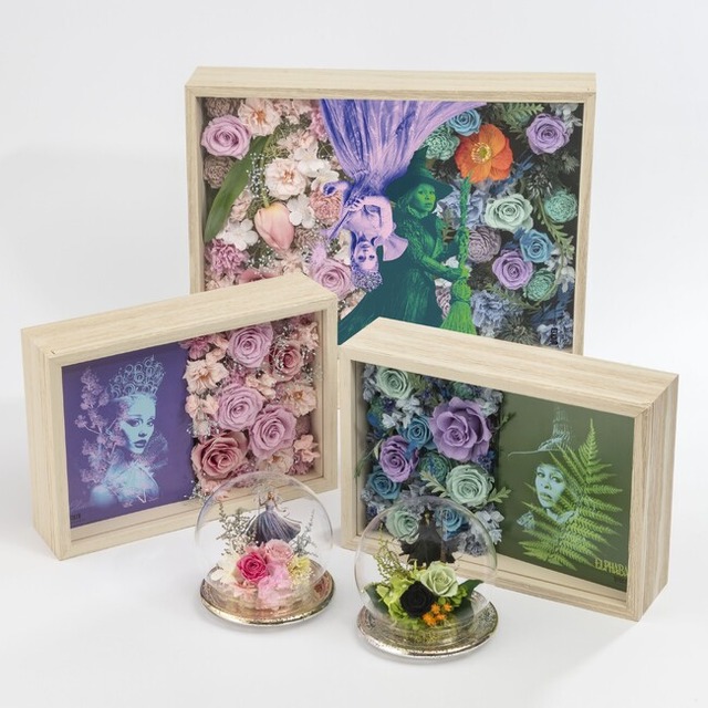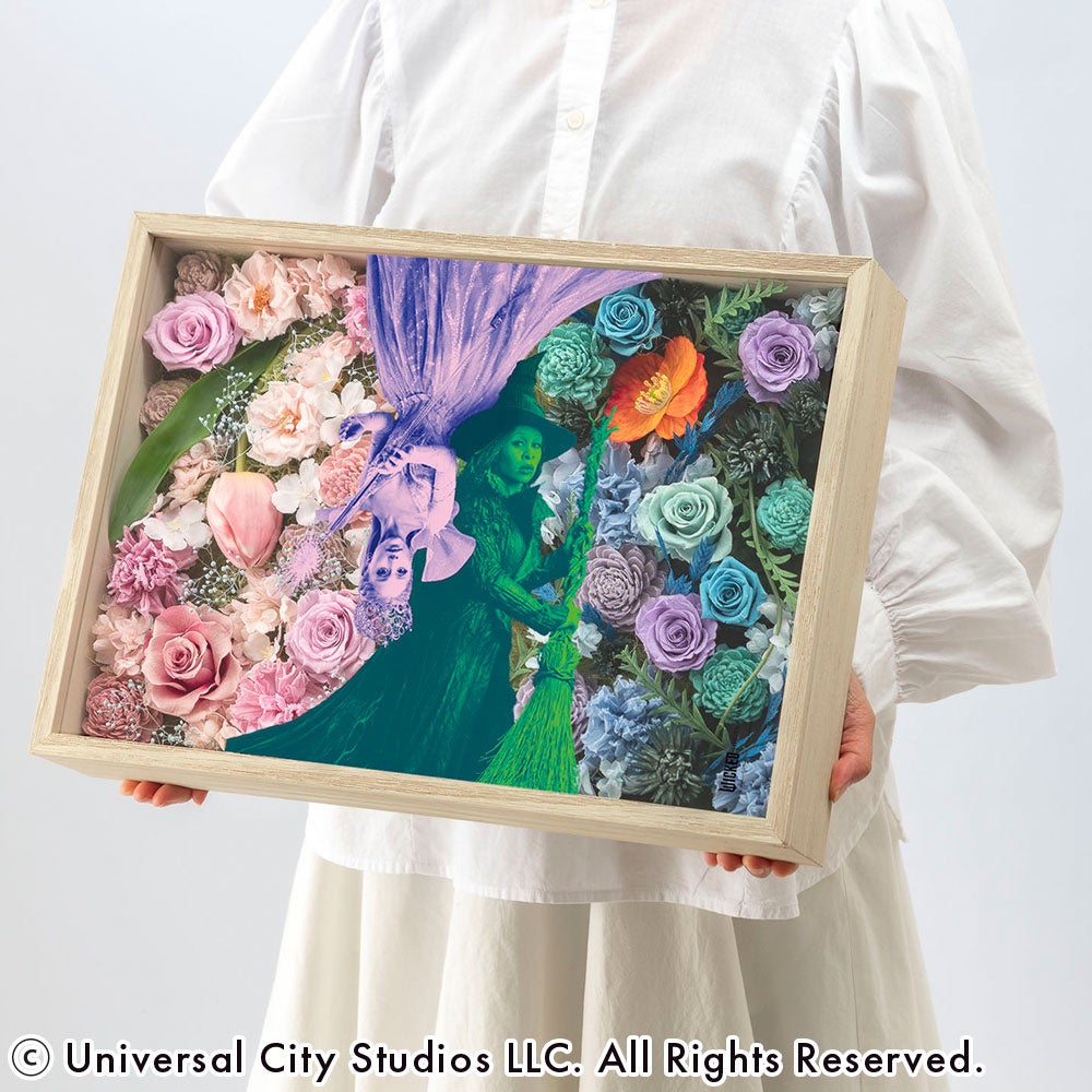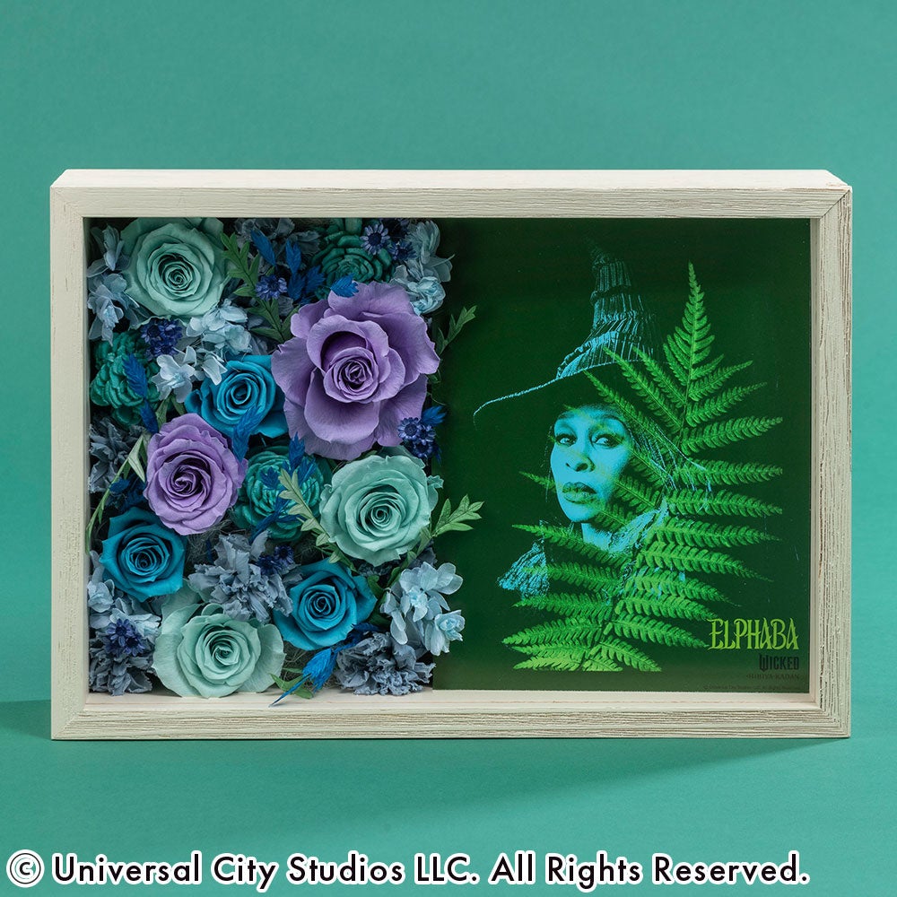 ラインアップは、デスクや棚などお好みの場所に飾って映画の感動をいつでも身近に感じられるアレンジメントタイプと、壁掛けとしても楽しめるフレームアートタイプを合わせた全5種類。物語の風景が目の前に広がるような、作品の世界に没入できるこだわりが詰まった逸品です。すべてここでしか手に入らないファン必見のウィキッドアイテム。飾るとたちまち物語のドラマティックな世界広がるフラワーアイテムを、ぜひこの機会にお楽しみください。