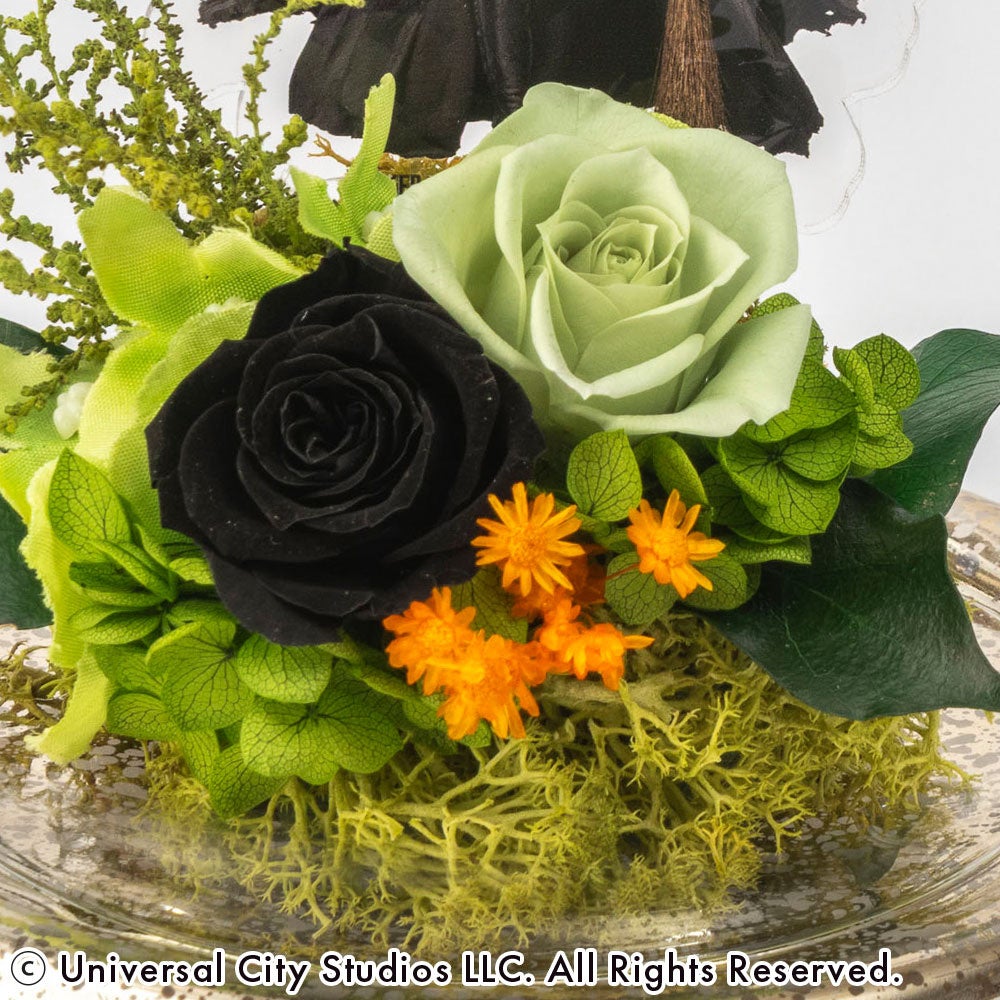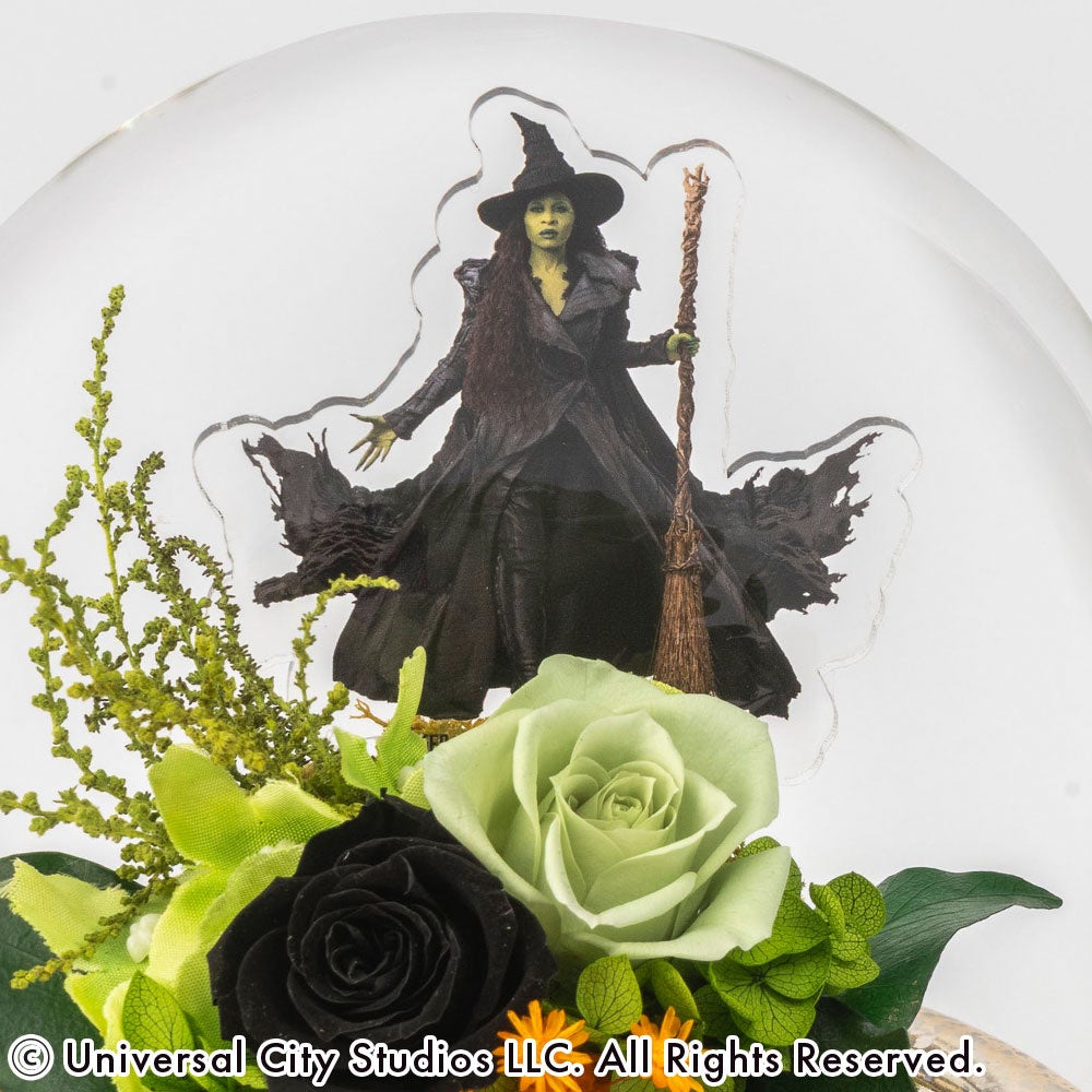 惹きつけられるのは、凛としたグリーンの魔法。自分らしく突き進むエルファバの強さを、鮮やかなグリーンのバラに込めて。ガラスドームの中に閉じ込めた神秘的な美しさは、まるで映画のワンシーンを切り取ったみたい!「人とは違う自分」を大切にする、そんなあなたの背中を押してくれる特別なフラワーアイテムです。
