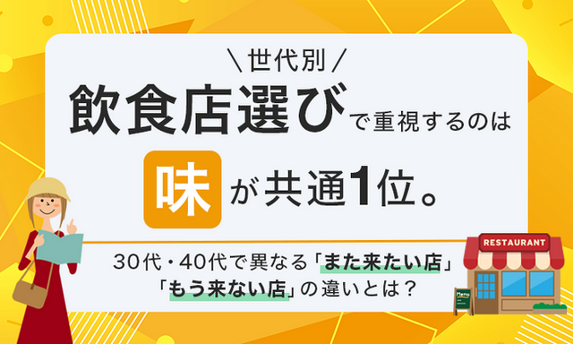 味・価格・雰囲気など重視するポイントは人それぞれですが、世代によっても微妙な違いがあるかもしれません。また、一度行ったお店に「また来たい」と思う瞬間もあれば、「もう来ない」と心に決める瞬間もあるでしょう。