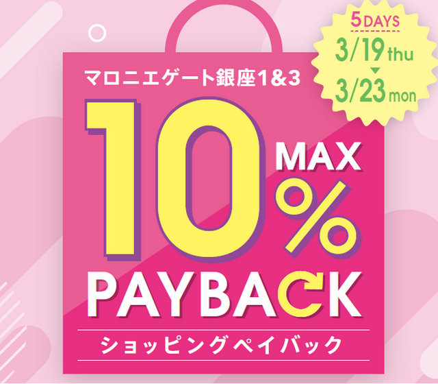 銀座の商業施設「マロニエゲート銀座1」(東京都中央区銀座2-2-14 運営会社:三菱地所プロパティマネジメント株式会社)では、3月19日(木)~3月23日(月)の期間中、対象店舗にて5,500円(税込)お買上げごとに1枚、マロニエゲート銀座1、マロニエゲート銀座3の全店舗で使える「お買物・お食事券500円分」をプレゼントするキャンペーンを実施いたします。お買物・お食事券は3月24日(火)~4月30日(木)の期間でご利用いただけます。是非この機会に足をお運びください!