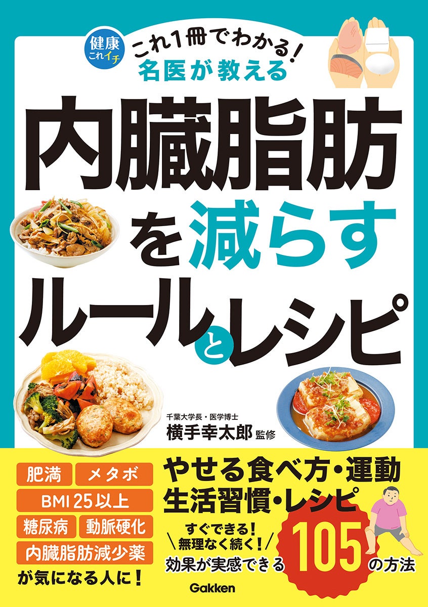『これ1冊でわかる! 名医が教える 内臓脂肪を減らすルールとレシピ』は、千葉大学長・医学博士の横手幸太郎先生が監修。脂質異常症や糖尿病の名医が、内臓脂肪や肥満症予防に関する知識を、図解を交えて105の方法でわかりやすく解説しています。