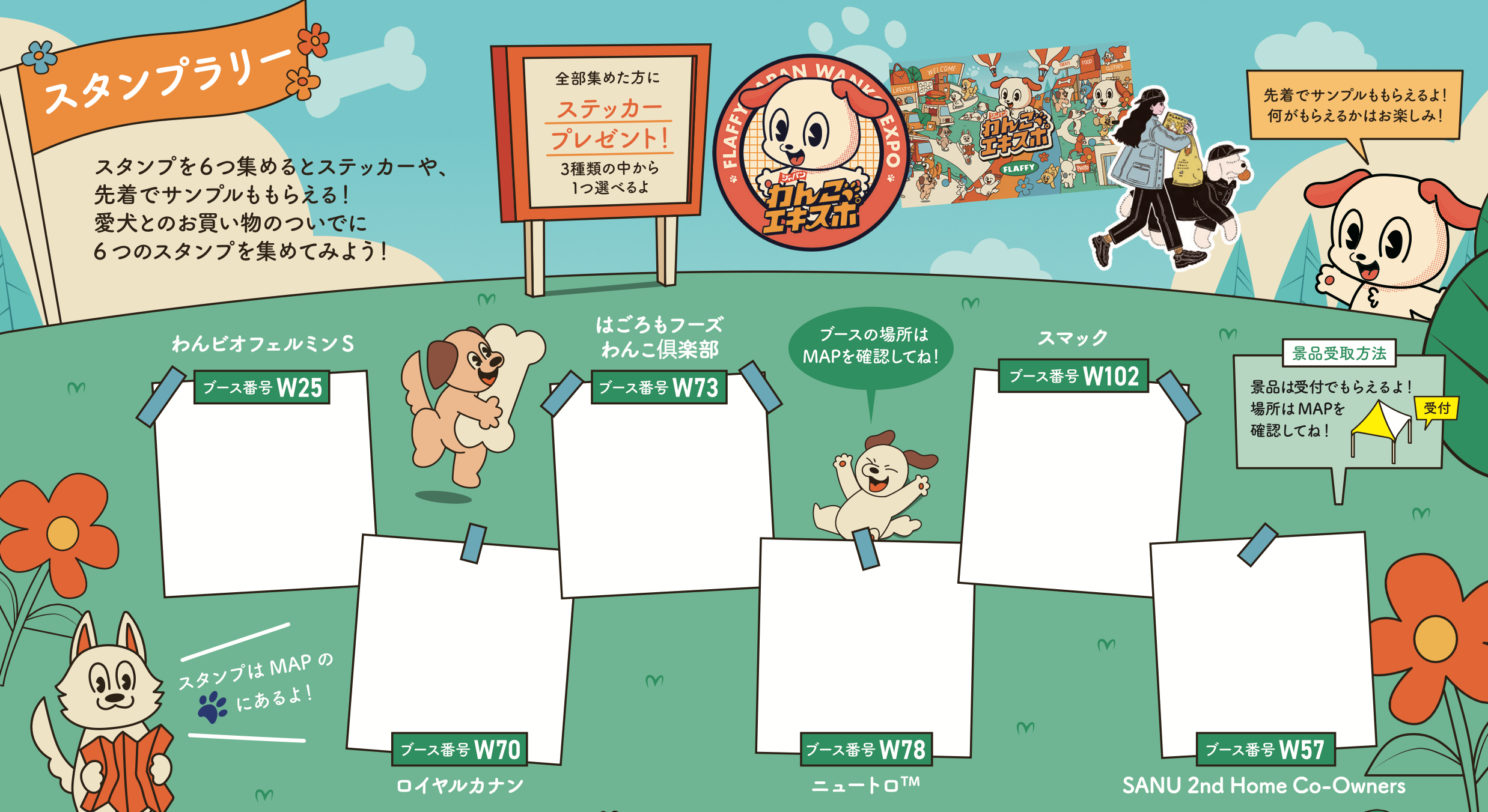 毎回大好評のスタンプラリーを今回も開催!パンフレット裏面が台紙になっており、会場内にある6つのブースを巡ってスタンプを集めると、景品として「FLAFFYオリジナルステッカー」3種類の中から1つをプレゼントします。さらに先着でもらえるサンプルもご用意。ブースを回りながらイベントをより楽しみ、思い出を形に残せる企画です。ぜひふるってご参加ください。