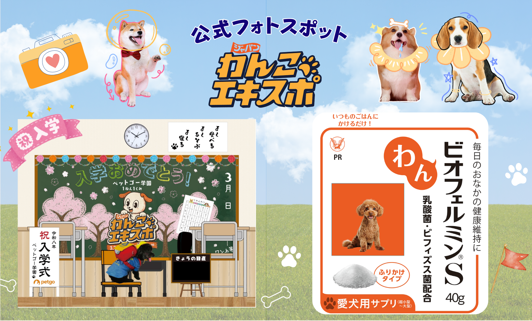 今回も、愛犬との思い出を可愛く残せるフォトスポットが盛りだくさん!ペットゴー協賛の“入学式”をテーマにしたフォトスポットをはじめ、「わんビオフェルミンS」のオリジナルパッケージ風写真が撮影できる人気スポット、韓国で話題のセルフ撮影機「韓国レシート」、また、イベントキャラクター「フラッフィーくん」と一緒に記念撮影ができる巨大モニュメントも設置!そして毎回大好評の「わんこ証明写真」とエポスカードのコラボも実施。会場でエポスペットカードに新規入会すると、愛犬の証明写真撮影を体験でき、撮影データの画像・動画もゲットできます。撮影した写真をカードデザインにすることも可能です。(各日先着70名)