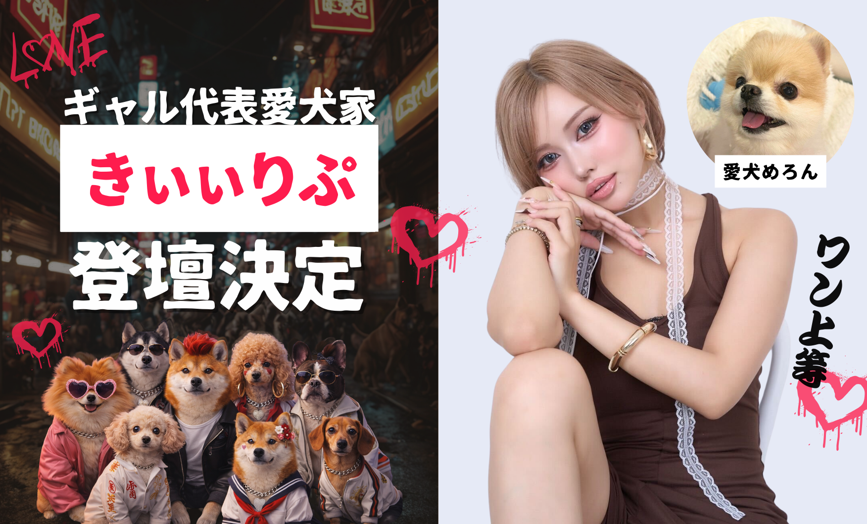 やんちゃな格好をしたわんちゃんのオフ会「ワン上等」に、恋愛リアリティショーにも出演した愛犬家の「きぃぃりぷ(鈴木綺麗)」さんが審査員として登壇決定!優勝者にはきぃぃりぷさんとの写真撮影ができる特典も!
