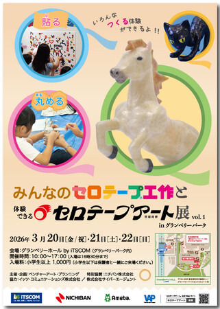 ニチバン株式会社(本社:東京都千代田区、代表取締役社長:高津 敏明)のセロテープ(R)でアート作品を制作する、世界で唯一の「セロテープアート(R)作家」瀬畑亮(せはた りょう)氏による「みんなのセロテープ(R)工作と体験できるセロテープアート(R)展」が3月20日(金/祝)から3日間、南町田グランベリーパーク内グランベリーホール by iTSCOMで開催されます。小さなお子様からお年寄りまで、みんなで一緒に楽しめる、春休みにピッタリの“体験できる”アートイベントです。