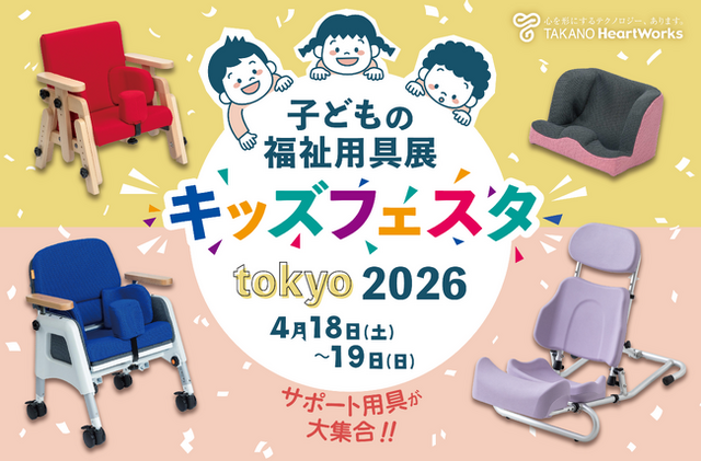 タカノ株式会社(本社:長野県上伊那郡宮田村、代表取締役社長:鷹野 雅央、以下タカノ)は、2026年4月18日(土)・19日(日)に、有明GYM-EX(ジメックス)(東京都江東区有明)で開催される、日本最大級の子ども向け福祉用具展「キッズフェスタ東京2026(第25回 子どもの福祉用具展)」へ出展します。