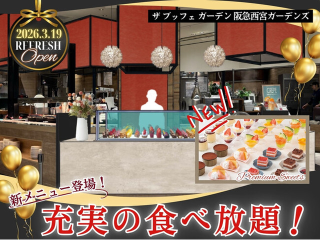 スタイリッシュな空間で、バラエティー豊かな食べ放題が楽しめる「ザ ブッフェ ガーデン 阪急西宮ガーデンズ」。この度、2026年3月19日(木)より装い新たにリフレッシュOPEN!