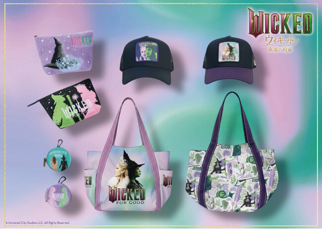 は、大ヒット上映中の『ウィキッド永遠の約束』のデザインを施した、ポーチやバッグなどの新作コレクションを3月中旬から随時発売いたします。
