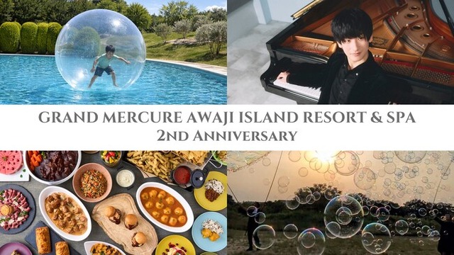 瀬戸内海の穏やかな海と豊かな自然に包まれたリゾートホテル「グランドメルキュール淡路島リゾート&スパ」(所在地:兵庫県南あわじ市/総支配人:大城雅弘)は、開業2周年を記念し、豪華ゲストを迎えたスペシャルイベントの開催をはじめ、プールや館内アクティビティをさらに充実させた多彩な企画を展開します。