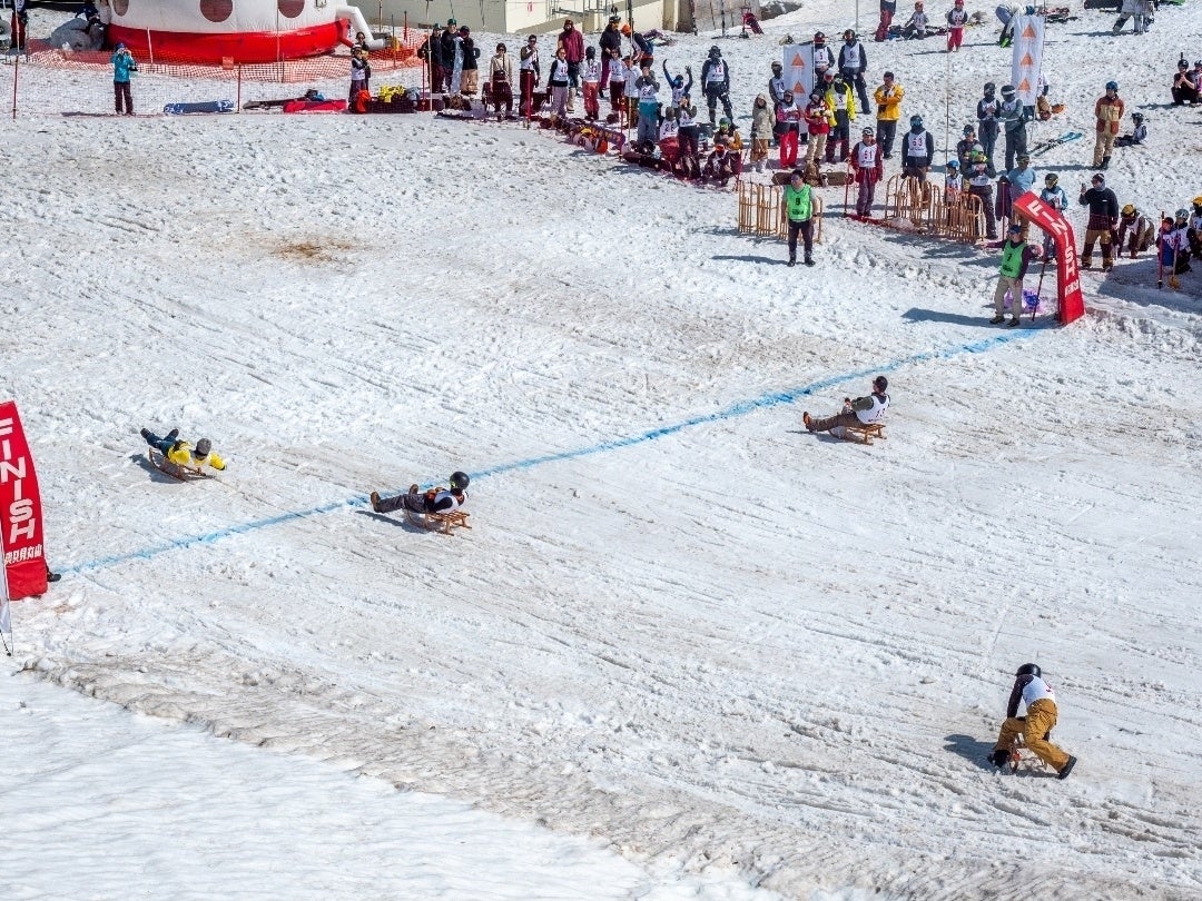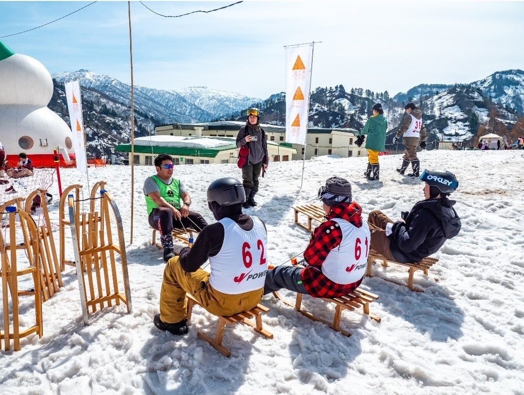 トーナメント形式で勝ち上がり、スピードとスタートダッシュ、そして雪面を捉える感覚が勝敗を分けるシンプルかつ白熱の競技形式です。
