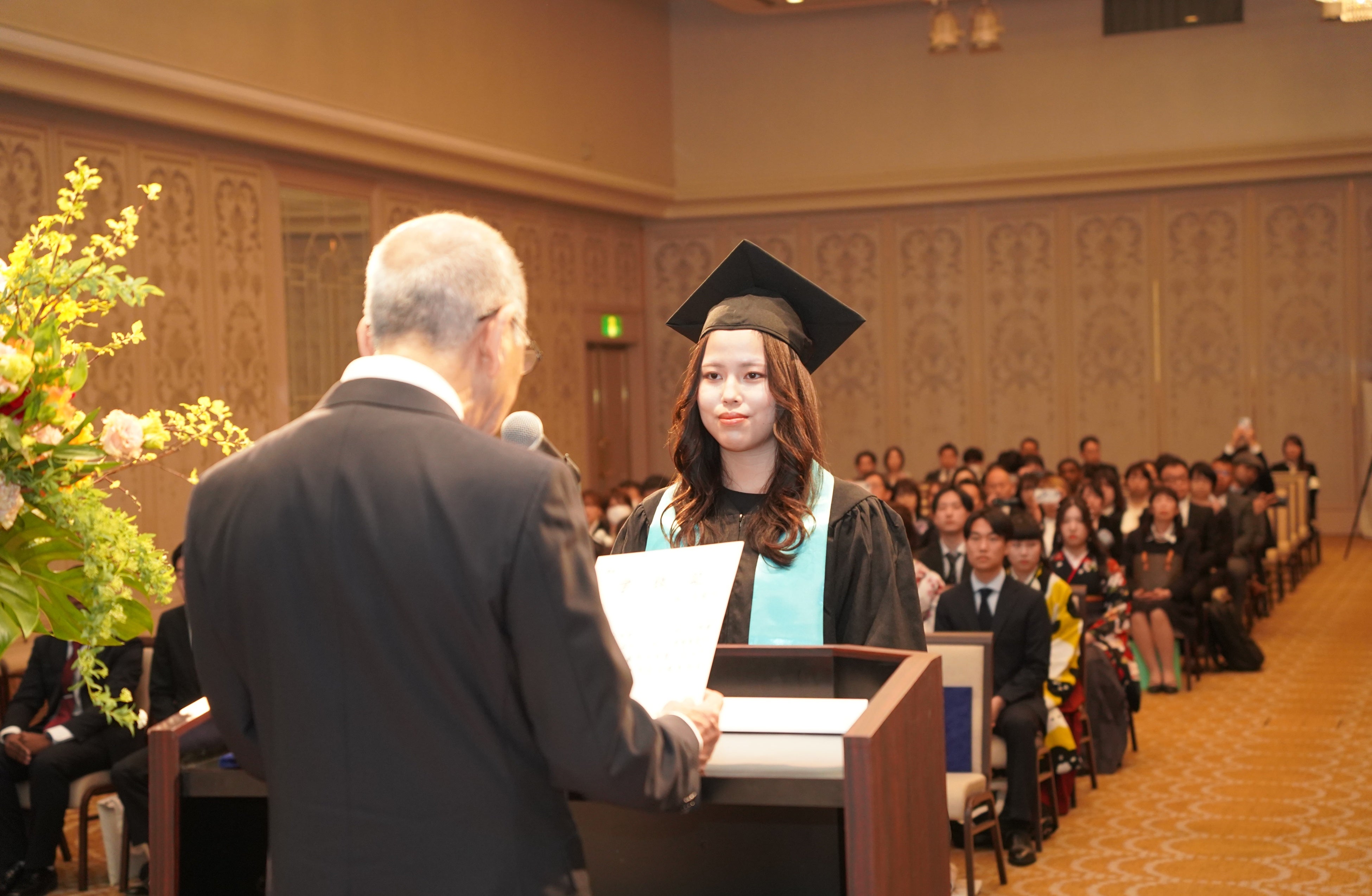 卒業生代表:山崎祥子さん(学位記授与の代表登壇、卒業生代表スピーチ)