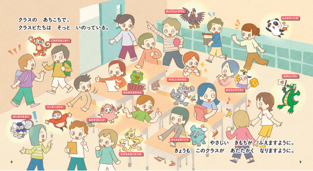 物語の中には、クラスの様子を見守る妖精「クラスピ」が登場。子どもたちが思いやりのある行動をすると「いいクラスピ」が現れ、クラスの雰囲気はあたたかくなります。