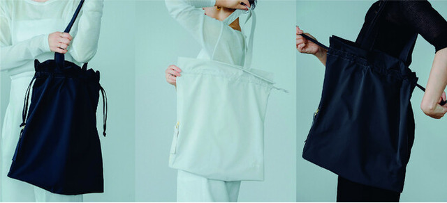 たくさん物を入れても中身が見えにくく、巾着仕様にすることで口元をしっかり閉じられるため、防犯面にも配慮した設計です。さらに、巾着としてもそのままでも使える2WAY仕様で、シーンや用途に応じた使い分けが可能です。