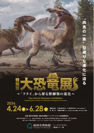 展覧会名:特別展 大恐竜展 ~「フクイ」から探る獣脚類の進化~会期:2026年4月24日(金)~6月28日(日)