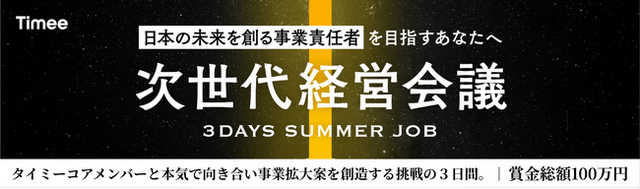 スキマバイトサービス「タイミー」を提供する株式会社タイミー(本社:東京都港区、代表取締役:小川 嶺)は、2026年7月3日(金)~5日(日)に2028年度卒業予定の学生を対象に、全国選抜型の3days Jobプログラム「次世代経営会議」を開催します。