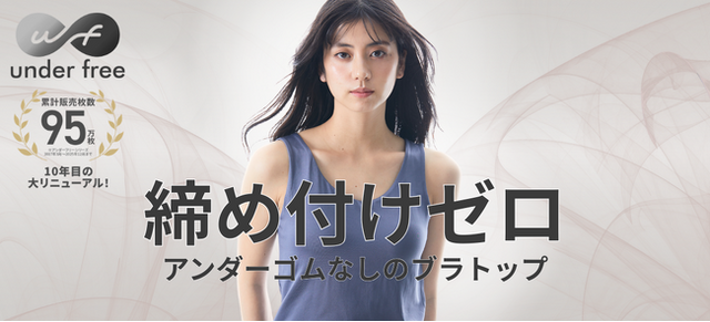 『アンダーフリー』の最大の特長は、一般的なブラトップなどに備わっているアンダーゴムの締め付け感をなくした「締めつけゼロ」の圧倒的な心地よさです。「ブラジャーの締め付けが苦しい」「ゴムの跡がつくのが苦手」といったお悩みを解決する、着ていることを忘れるほどのストレスフリーな感覚が支持され、長く愛され続けているシリーズです。