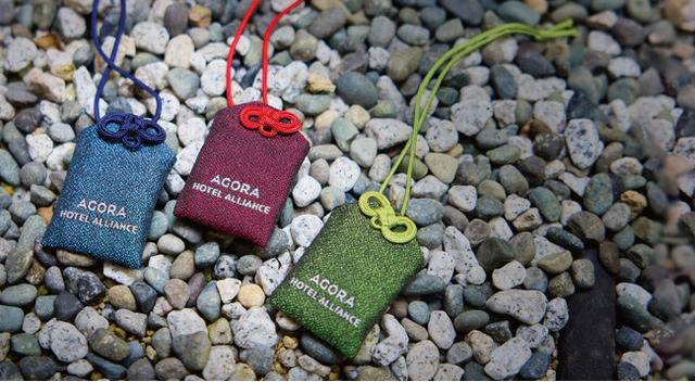 赤はHappiness(幸せ)、青はTravel & Safety(旅の安全)、緑はHealth & Success(健康・仕事・学業の成就)の願いを込めた、アゴーラでの滞在を象徴するチャームです。