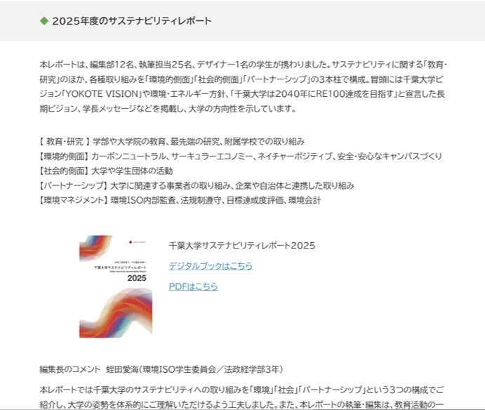 本サイトは、学内外に向けて、同大学の環境やサステナビリティへの取り組みや活動内容をわかりやすく紹介し、持続可能な社会の実現に向けた情報発信の強化を目的としています。