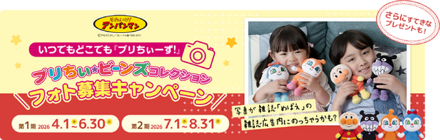 株式会社セガ フェイブ(本社:東京都品川区、代表取締役社長執行役員:杉野行雄、以下セガ フェイブ)は、アンパンマンのぬいぐるみシリーズ『プリちぃビーンズ コレクション』を使った「いつでもどこでも『プリちぃーず!』プリちぃビーンズ コレクションフォト募集キャンペーン」を2026年4月1日(水)より開催します。