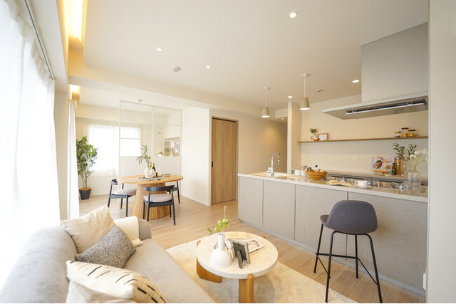 本物件は、都市部で働く30代のカップル・夫婦をターゲットといたしました。友人を招いて調理を楽しめるキッチンと、在宅ワークや趣味を快適にするパーソナルスペースを兼ね備えた住まいです。