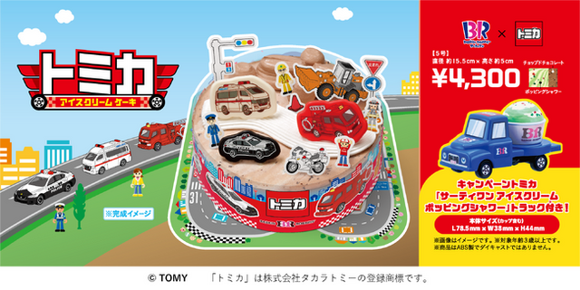 B‐Rサーティワンアイスクリーム株式会社(所在:東京都品川区上大崎3-1-1/代表取締役会長兼社長CEOジョン・キム:東京証券取引所(スタンダード市場):2268)は、2026年4月1日(水)から期間限定で、手のひらサイズのミニカー「トミカ」(発売元:タカラトミー)との初コラボレーション商品を発売します。国内外シリーズ累計販売台数10億台を超え、世代を超えて愛され続けるトミカの世界がそのままアイスクリームケーキになり、はたらく車が大集合!サーティワンだけのトミカタウンをお楽しみください。また本商品にはキャンペーントミカ「サーティワン アイスクリーム ポッピングシャワー」トラックが1台付属します。