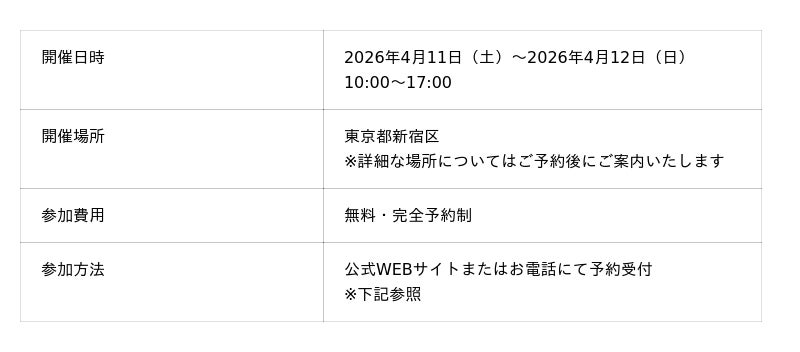 - 参加申込方法:下記WEB公式サイトイベントページよりご予約またはお電話にて受付