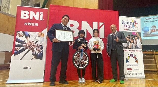 校内選抜を勝ち抜いた優勝チームは、2026年2月、現役経営者たちが集うビジネスミーティング「BBM(Big Business Meeting)」に登壇。少子高齢化に伴う2030年の人手不足問題に切り込む会社の事業案を堂々とプレゼンし、大人たちから大きな喝采を浴びました。