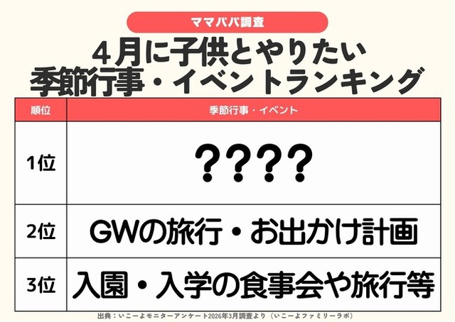 - 調査|赤ちゃんと楽しむ 4月の季節行事&イベントランキング