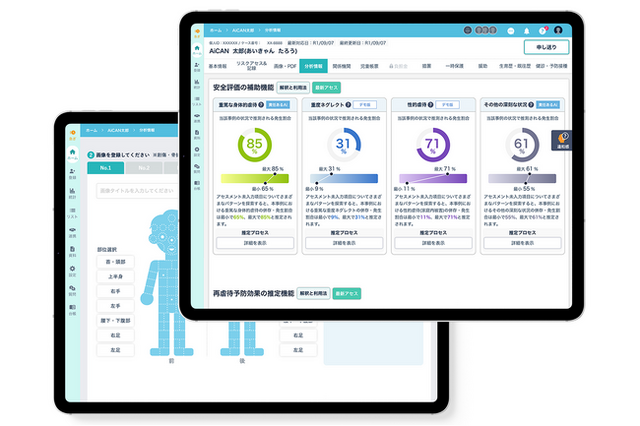 タブレット端末から利用できるWebアプリ・クラウドデータベース・データ分析用AIから構成されています。