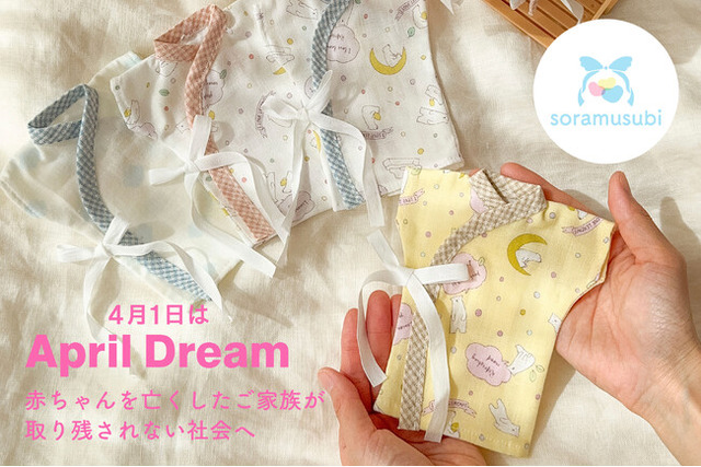 soramusubiは、お空へ旅立った赤ちゃんへのメモリアル品を手作りするとともに、お別れのときに着せてあげられる「小さな産着」を、必要としているご家族や医療機関へ寄付しています。■概要