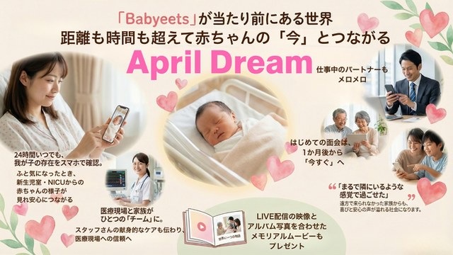当社は、4月1日を夢を発信する日にしようとするApril Dreamに賛同しています。このプレスリリースは「(株)カワニシ Babyeets(ベビーツ)」の夢です。