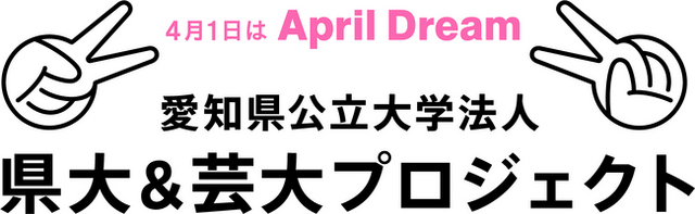2大学連携事業をより推進すべく、シンボルマークとしてチラシやポスター等に使用できる「愛知県公立大学法人 県大&芸大プロジェクト」のロゴを愛知県立芸術大学 佐藤直樹教授に依頼し作成しました。