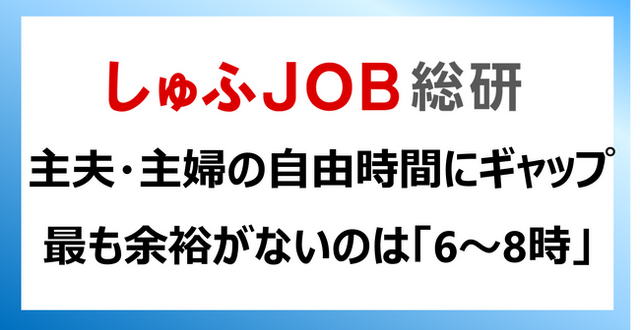 仕事と家庭の両立を希望する主婦・主夫層の実情や本音を探る調査機関『しゅふJOB総研』(運営会社:株式会社ビースタイルホールディングス 本社:東京都新宿区、代表取締役:三原邦彦)は、『主婦・主夫の自由時間』をテーマに仕事と家庭の両立を希望する主婦・主夫層にアンケート調査を行いましたので以下にご報告します。(有効回答数:552件)