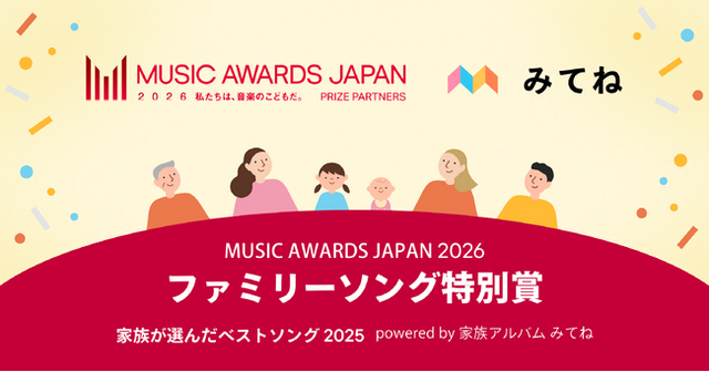 「みてね」は、「MUSIC AWARDS JAPAN 2026」にプライズパートナーとして協賛し、共創カテゴリ内にて「ファミリーソング特別賞 家族が選んだベストソング2025 powered by 家族アルバム みてね」を新設しました。