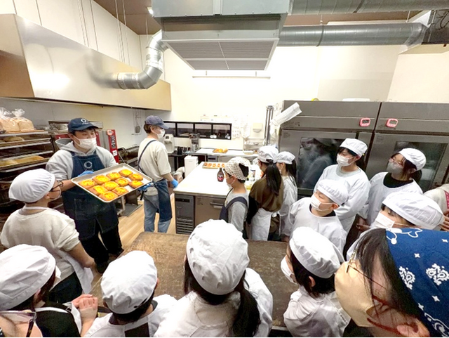 パンの製造過程を興味深く質問すると、ナルトベースのパン製造をしているスタッフが子ども達の質問にひとつひとつ丁寧に返答、一日に約1000個のパンを焼き100種類以上のバリエーションがあると聞くと子ども達は驚き、次から次へと質問が飛び交った。