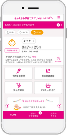 栄村に採用された『さかえむら子育てアプリwith』は、スマートフォン・タブレット端末・PCに対応したサービスで、妊産婦と子どもの健康データの記録・管理や予防接種のスケジュール管理、出産・育児に関するアドバイスの提供、離れた地域に住む祖父母など家族との共有機能や、村が配信する地域の情報をお知らせするなど、育児や仕事に忙しい母親や父親を助けてくれる便利な機能が充実しています。