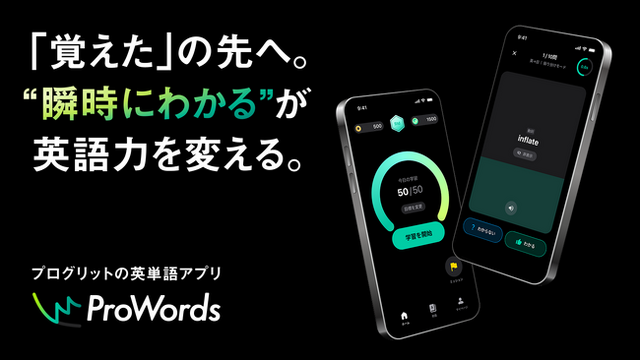 英語学習プラットフォームの株式会社プログリット(本社:東京都港区浜松町、代表取締役社長:岡田 祥吾、証券コード:9560)は、2026年4月3日、英単語学習アプリ『プロワーズ(ProWords)』をiOS・Android対応の無料アプリとしてリリースしたことをお知らせいたします。本アプリは、プログリットが蓄積してきた英語コーチングのノウハウをもとに、「覚えた」で終わらず「瞬時に使える」レベルまで語彙を定着させることで、ビジネスパーソンの英語力向上を支援してまいります。