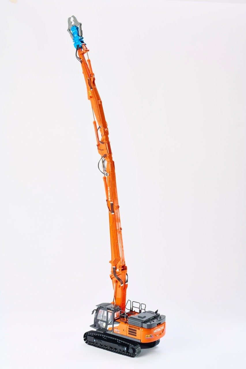 最大の特徴は、1つの本体に2種類のフロント(ハイリフトフロント/ツーピースブーム)が付属しており、用途に合わせてフロントを組み替えることが出来る点です。高層解体向けのハイリフトフロントと、基礎解体を想定したツーピースブームの両方を楽しめる“特別セット”として展開いたします。実機の存在感・操作機構・質感にこだわり抜き、ファンやコレクターはもちろん、建設・解体業界のプロフェッショナルにも満足いただける精密モデルとして仕上げました。