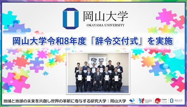 国立大学法人岡山大学(本部:岡山市北区、学長:那須保友)は、2026年4月1日、本学津島キャンパスの本部棟において令和8年度辞令交付式を実施しました。
