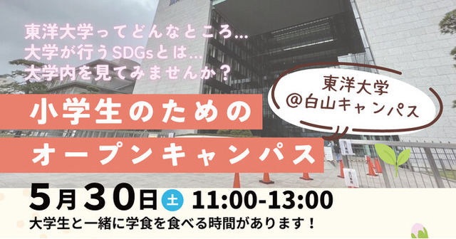 - イベント名:小学生のためのオープンキャンパス 東洋大学@白山キャンパス