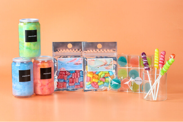 口の中でパチパチと弾けるキャンディの刺激も特長のひとつ。ソーダのしゅわしゅわとした感覚を再現した、遊び心のあるコットンキャンディです。