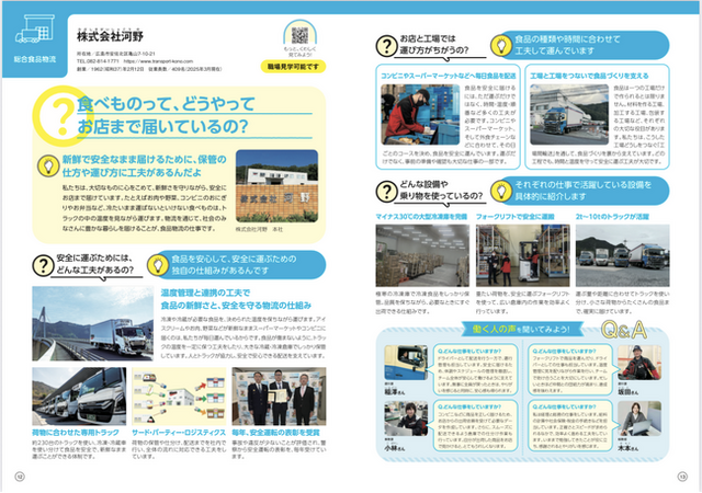 株式会社河野は、「物流を通じて地域に貢献する」という理念のもと、地域の未来を担う子どもたちに“働くことの楽しさ”や“食が届く大切さ”を伝えるとともに、地域根ざした取り組みを進めながら教育・文化の発展に貢献してまいります。