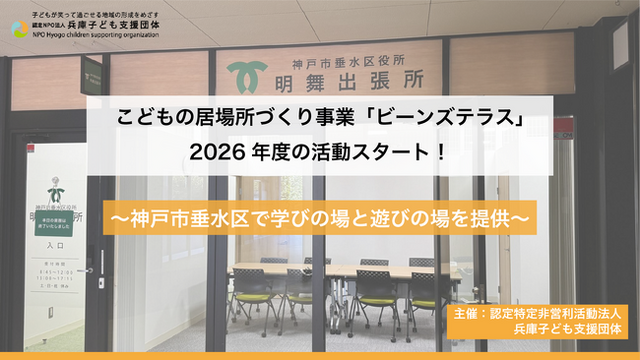 認定NPO法人兵庫子ども支援団体(所在地:兵庫県明石市、代表理事:多田実乘、以下「当法人」という)は、どもの居場所づくり事業として実施している「ビーンズテラス」の新年度の活動を2026年4月11日(土)から開始いたします。