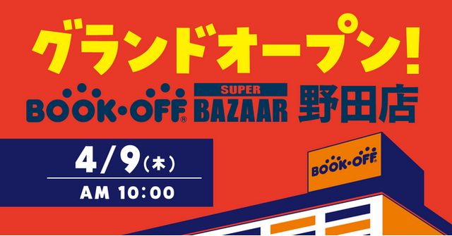 ブックオフグループホールディングス株式会社(本社:神奈川県相模原市、代表取締役社長:堀内康隆)の子会社で、リユースショップ「BOOKOFF」等を運営するブックオフコーポレーション株式会社(以下、ブックオフ)は、2026年4月9日(木)に「BOOKOFF SUPER BAZAAR(ブックオフスーパーバザー) 野田店」をオープンします。