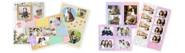 「デコレーションプリント」は、写真や画像をさまざまな種類のフレームでデコレーションし、コンビニエンスストアで手軽に印刷できる新サービスです。クリスマスやハロウィンなど季節のイベントにちなんだデザインや、シール機風のレイアウトなど、豊富なバリエーションのテンプレートを用意しています。スタンプや文字などを付け加えることも可能です。光沢紙(A4サイズ)や写真用紙(L判・2L判)、シール紙(L判)に対応。お気に入りの写真や画像をステッカーやカレンダーにするなど、さまざまな用途でお楽しみいただけます。